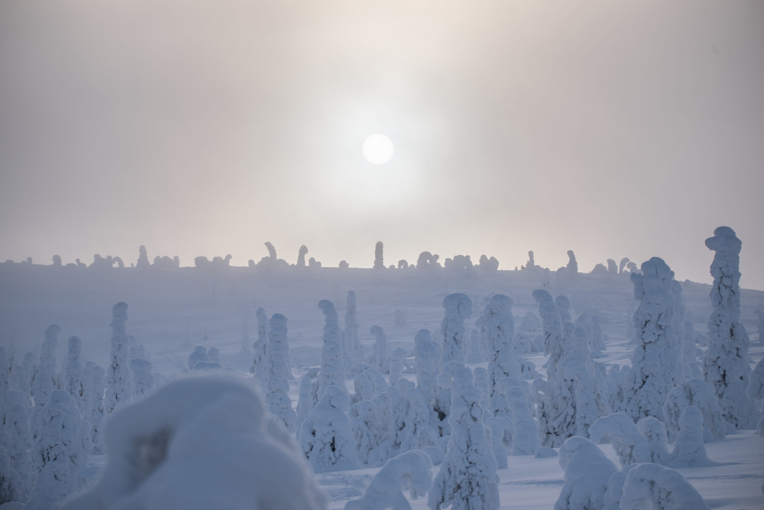 We could not skip the Riisitunturi National Park when visiting the area. It was a dream to finally being able to see the so known tykkylumi trees from the North. In fact, we loved the place so much, and the weather was so perfect, that we basically spent the whole day there. During the morning: